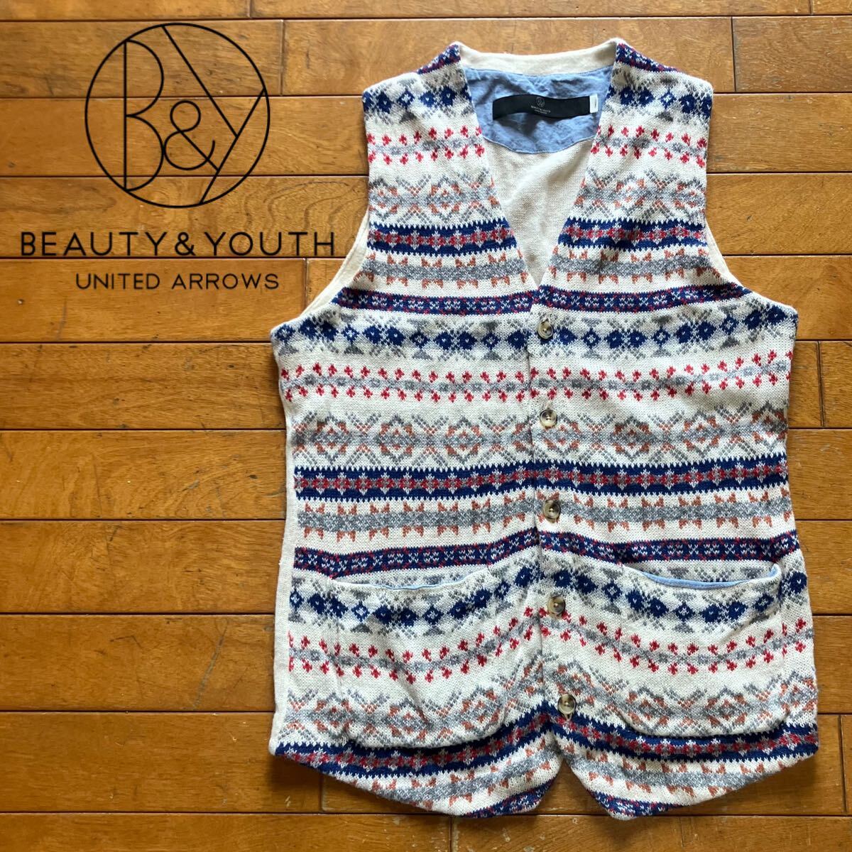> ☆【 BEAUTY&YOUTH 】★ アローズ 綿麻 ジャガードニットベスト ジレ★サイズS