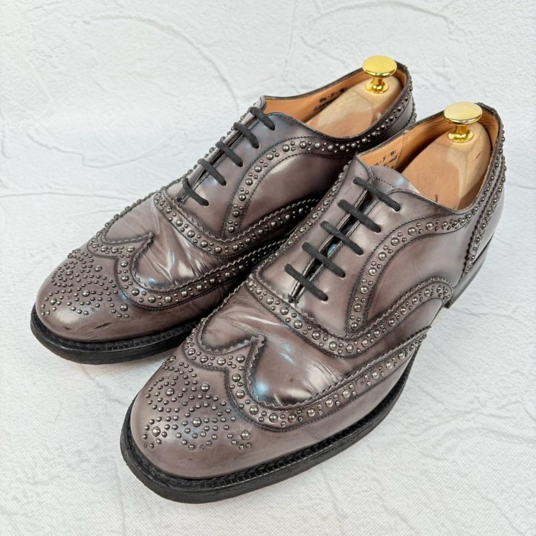- 【希少】Church's チャーチ BURWOOD MET バーウッドメット スタッズ フルブローグ 灰 グレー UK8.5 / 27cm 英国 レザーソール