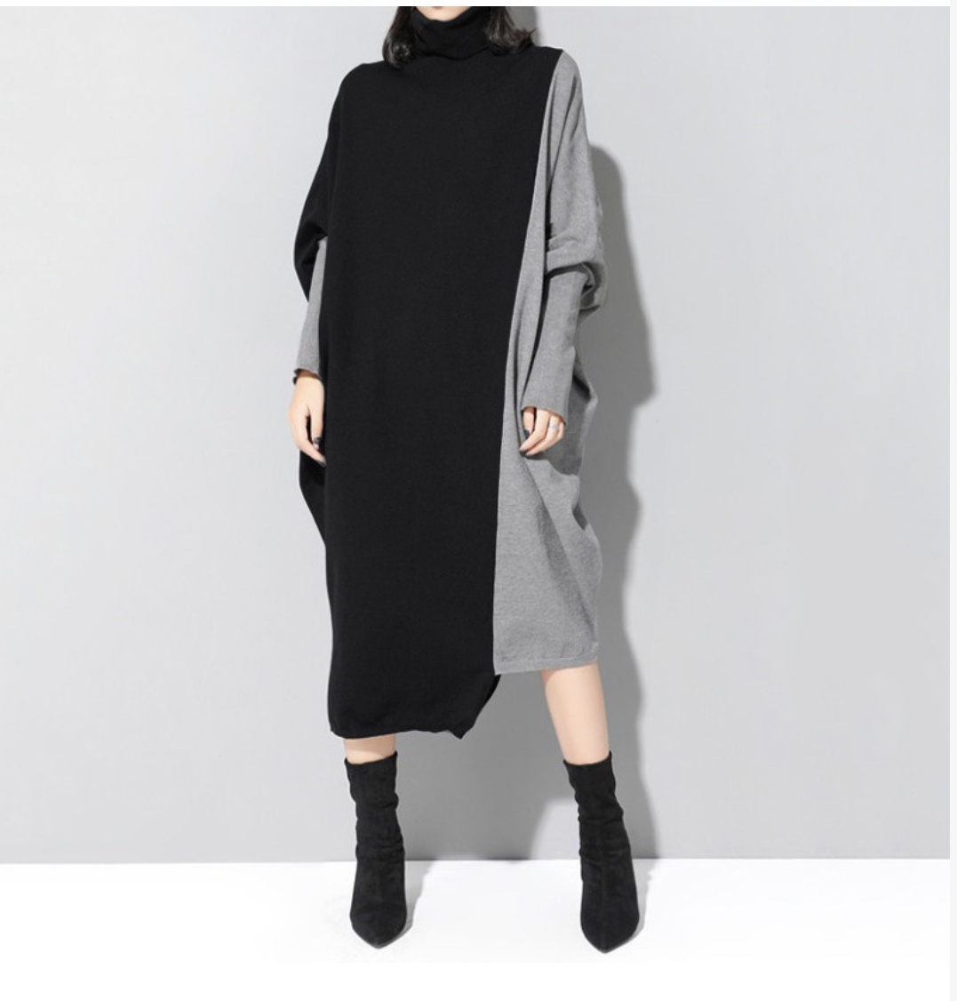 - 【新品】ワンピース タートルネック ブラック グレー カットソー XL