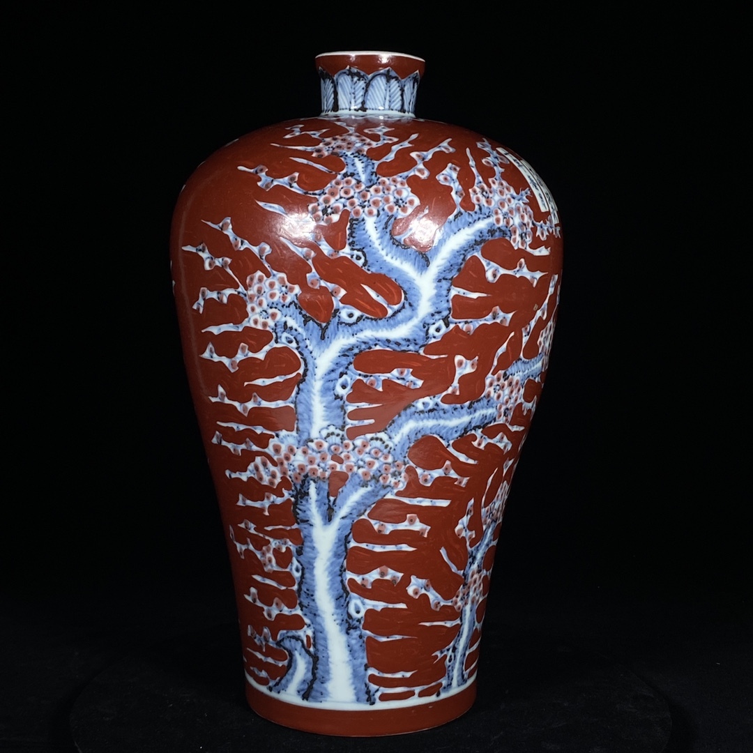 - 唐物 明 洪武年製 青花 礬紅梅花紋 梅瓶 陶芸 磁器 古陶磁器 中国美術品 時代物 D63