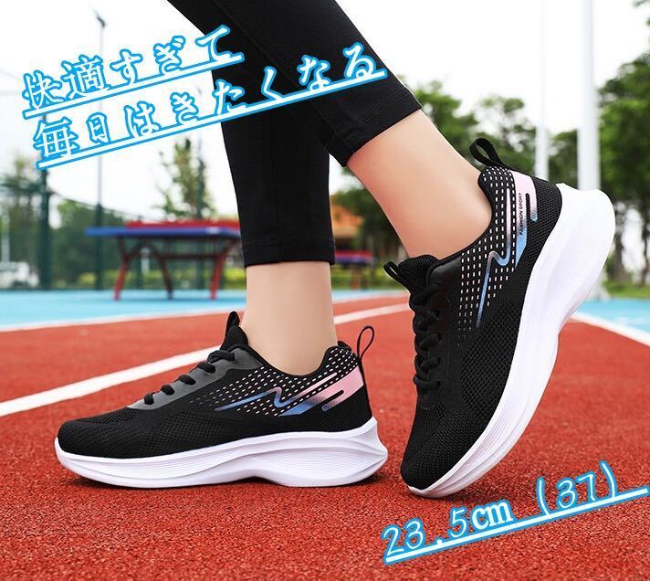 > スニーカー レディース 厚底 ウォーキングシューズ ランニングシューズ ジョギングシューズ 30代 おしゃれ 23.5cm黒