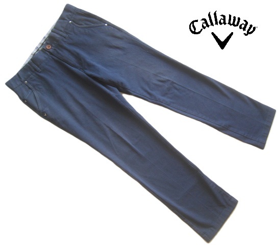 > 美品!!キャロウェイ Callaway*ISLAND DREAMS刺繍 ストレッチポリコットンパンツ M 紺 ネイビー ゴルフ GOLF