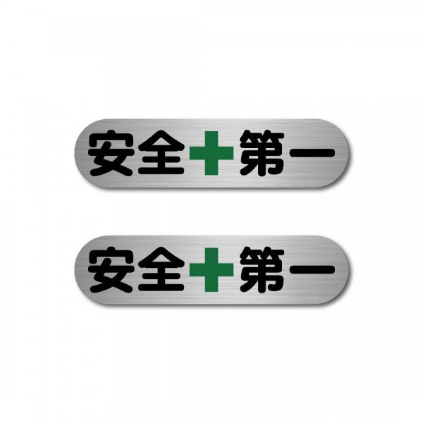 > 安全第一 ステッカー 2枚セット ヘアラインシルバー 小 マット 新品 W100mm x H25mm 耐候 耐水 耐傷 ヘルメット シール 安全対策 工事現場