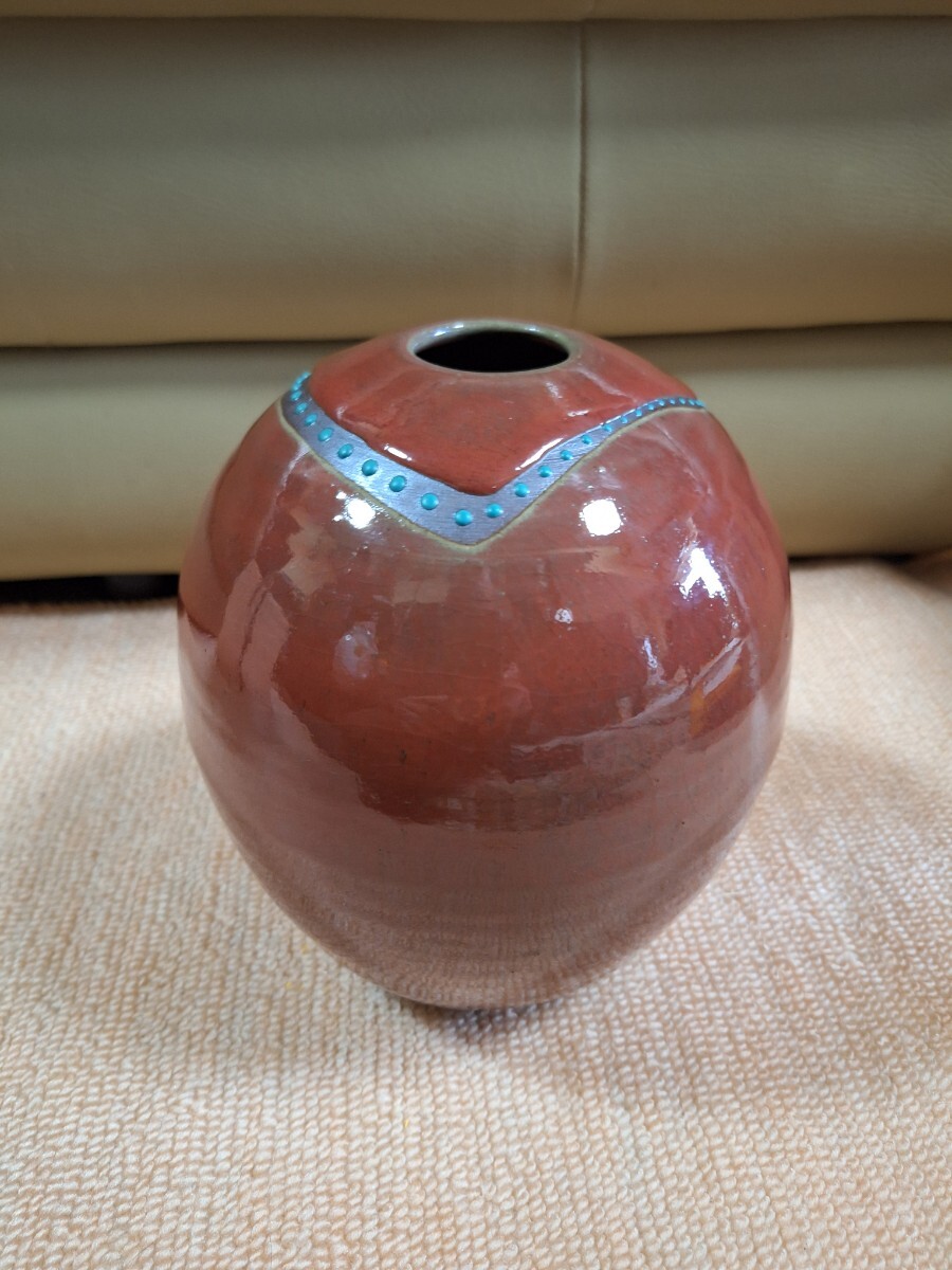 - 虫明焼、黒井千左、辰砂青点文花入