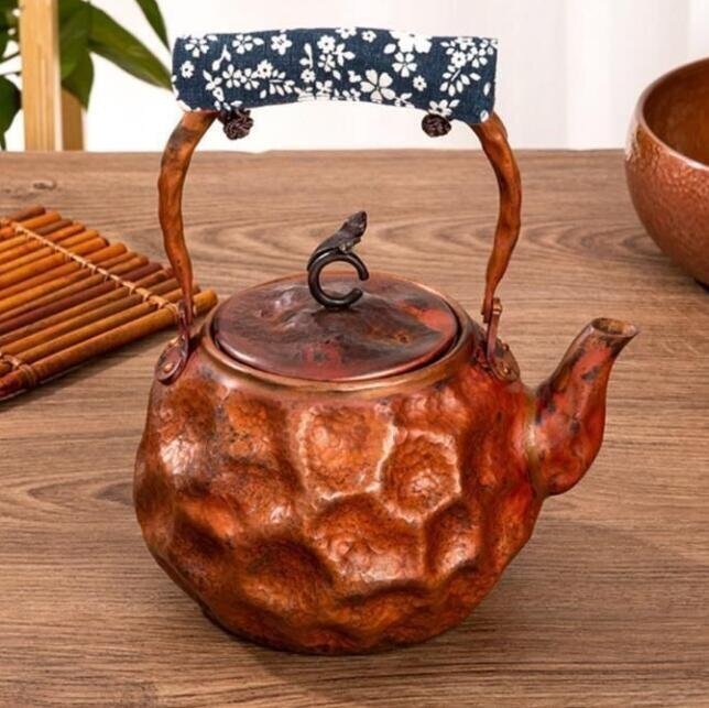 - 手作り**純銅焼やかん特厚銅提梁壺茶を煮ます 1200ML
