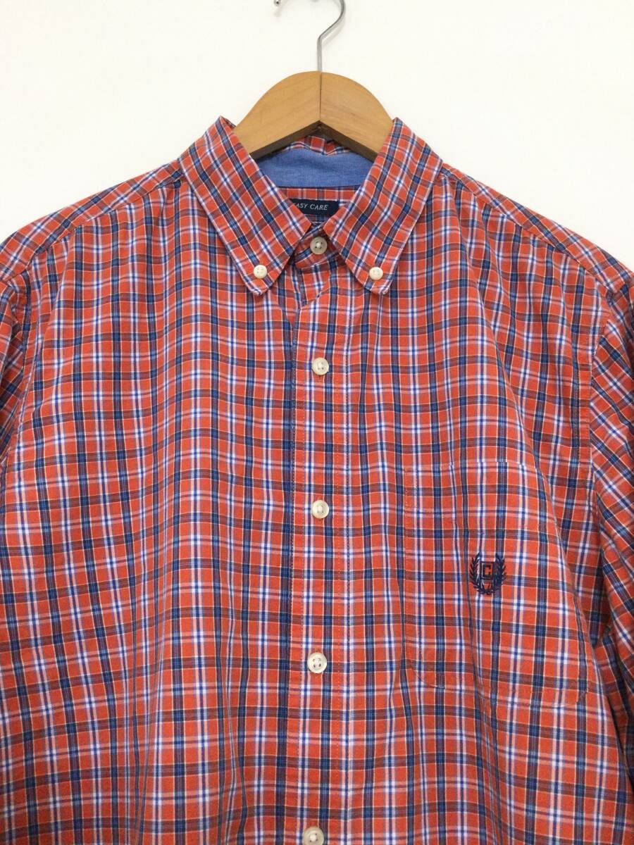 > CHAPS チャップス チェック柄 長袖シャツ コットン×ポリエステルシャツ ボタンダウン 胸ロゴ メンズM【良品綺麗】38