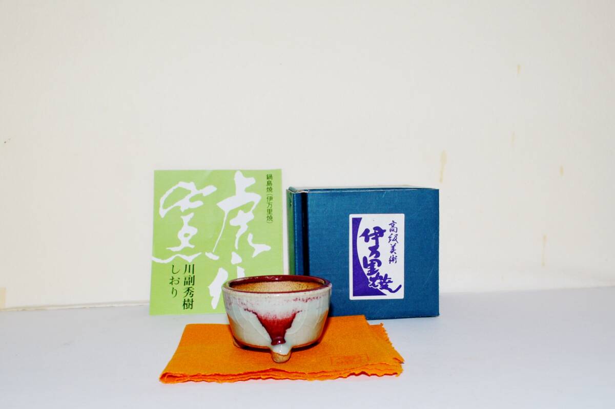 - 超希少・共布・箱しおり付き・鍋島焼虎仙窯 「川副秀樹」 氷裂青磁釉に辰砂釉 切立丸形の鉢