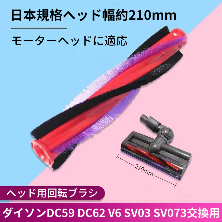 - 掃除機モーターヘッド用回転ブラシ ダイソンDC59 DC62 V6 SV03 SV073交換用アクセサリ長さ185mm日本規格ヘッド幅約21cm モーターヘッド対応