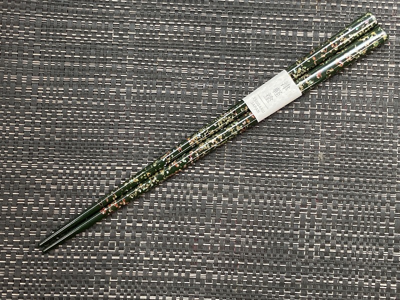 - 伝統工芸品【即決】津軽塗箸 唐塗 貝蒔 深緑