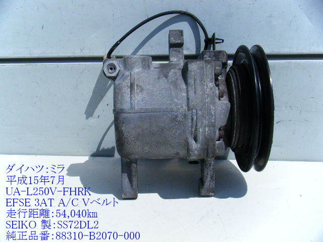 - ◆UA-L250V L250S ダイハツ ミラ コンプレッサー SEIKO製 Vベルト SS72DL2 88310-B2070-000 [13816]