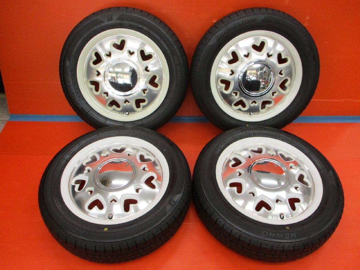 - 【O4】K-QUTY 14インチ 4.5J +43 4H 100 パールホワイト/ポリッシュ 色褪せ NEWNO 155/65R14 アルトラパン ミラココア ムーヴキャンバス