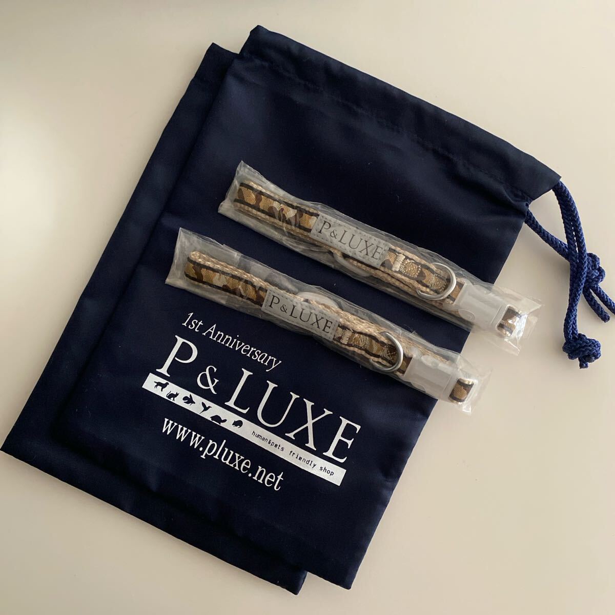 - 【新品未使用】P&LUXE 犬用 ワンチャン ペット 首輪 2本 & 巾着袋 2個セット