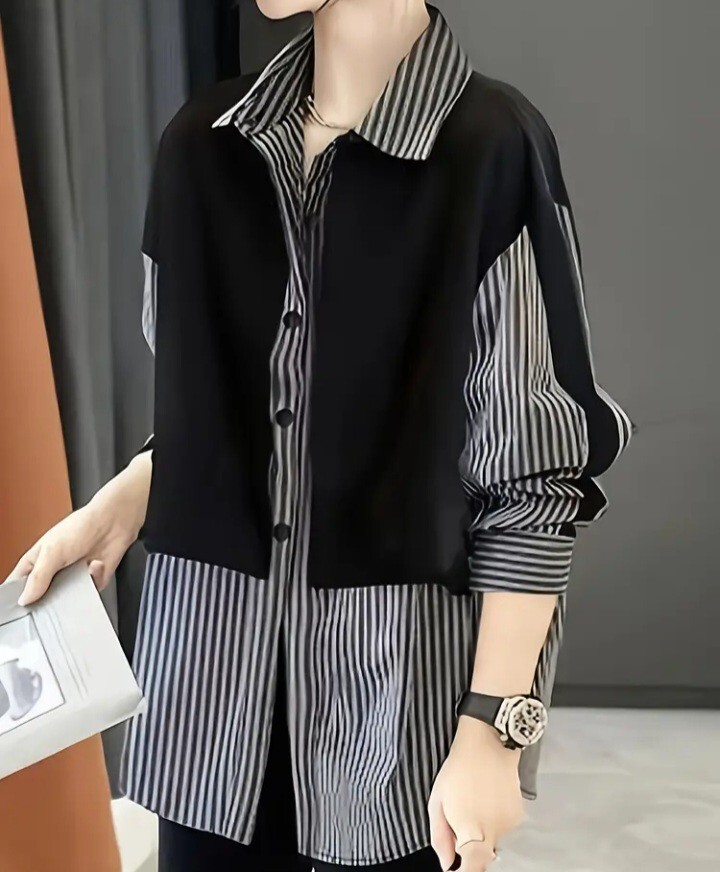 - 新品 M シャツ ストライプ おしゃれシャツ ブラック 長袖 ブラウス