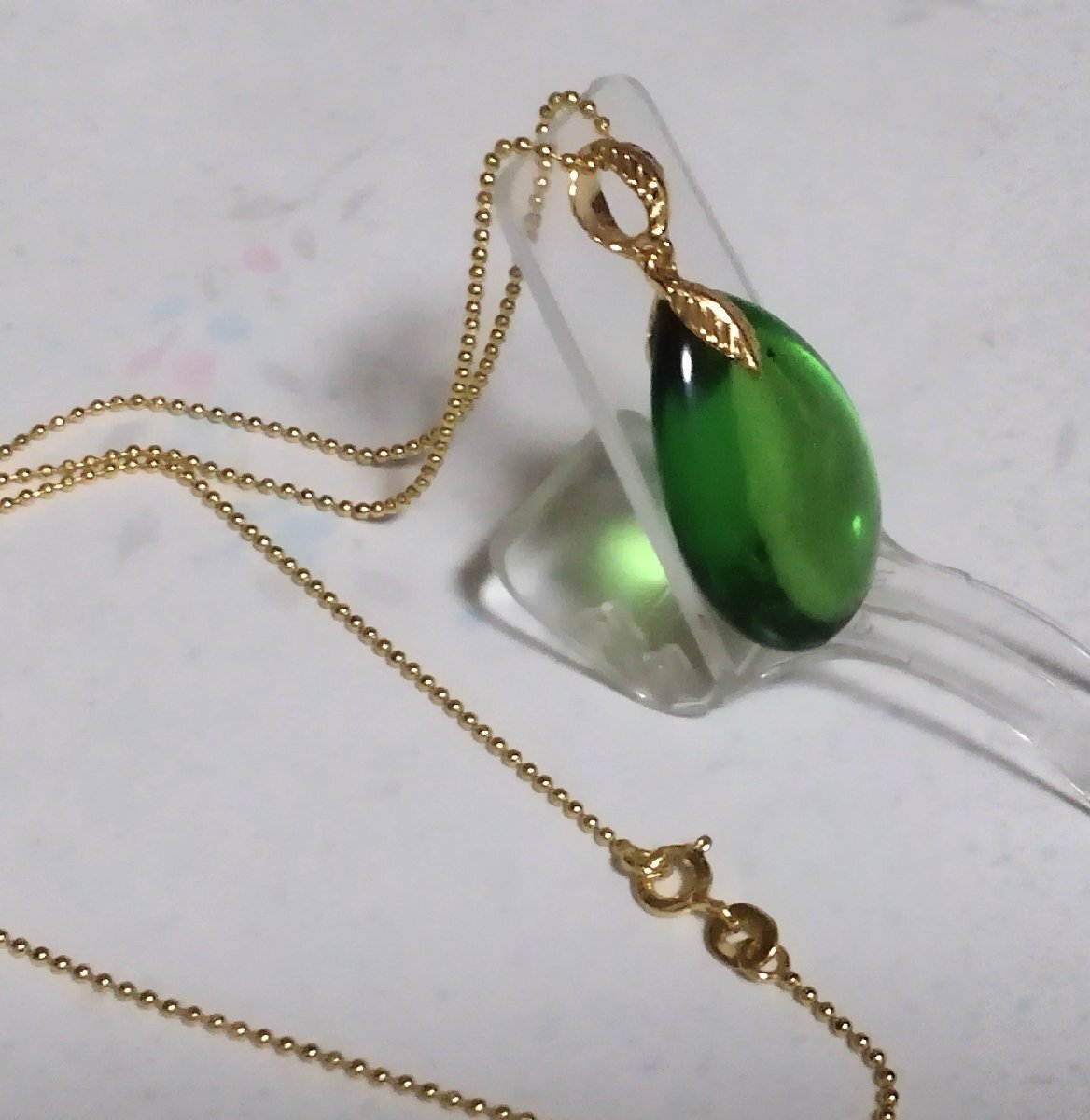 - 18Kゴールドカラーの5A グリーンアンバーのゴールドネックレス