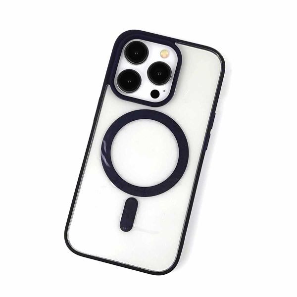 - iPhone 14 Pro用 MagSafe対応 耐衝撃ハードケース カバー シンプル 透明 クリア パープル