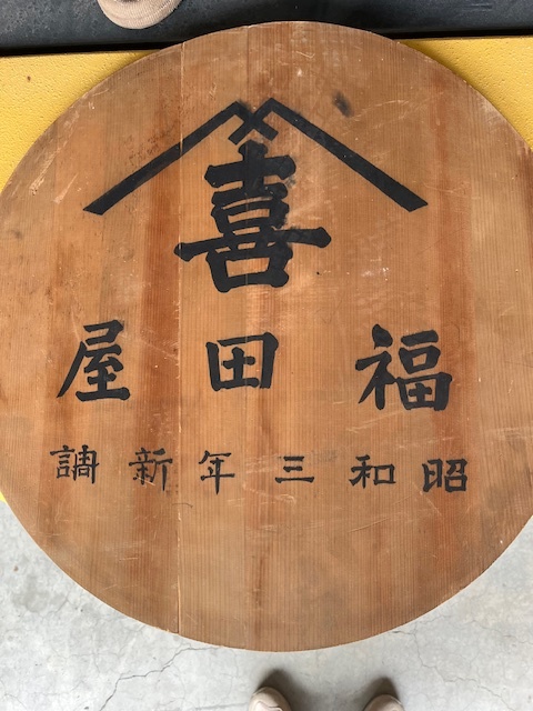 - 粋なひのき木桶 (610×610×33.5)昭和三年物 蓋付 桶 樽 タライ木製 木桶 寿司桶 飯台 昭和レトロ古民具時代物粋な看板等