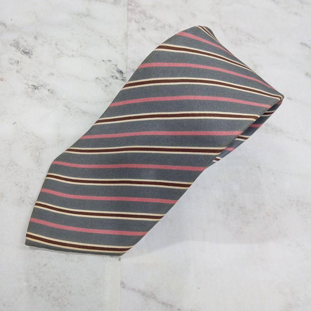 - イヴサンローラン ネクタイ 灰色 桃色 ストライプ柄 絹 春【n951】