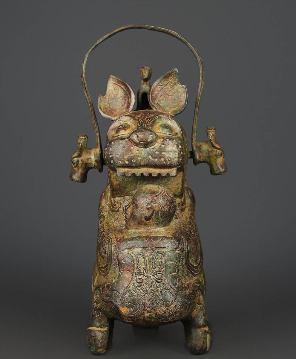 - ▽鴻▽ 西周 青銅製 虎食人提梁 置物 古賞物 中国古玩 中国古美術