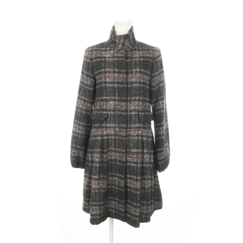 - セオリー Theory ロングコート スタンドカラー ツイード ウール 切替 タック チェック 総柄 2 M グレー /AH18 ■GY19 レディース