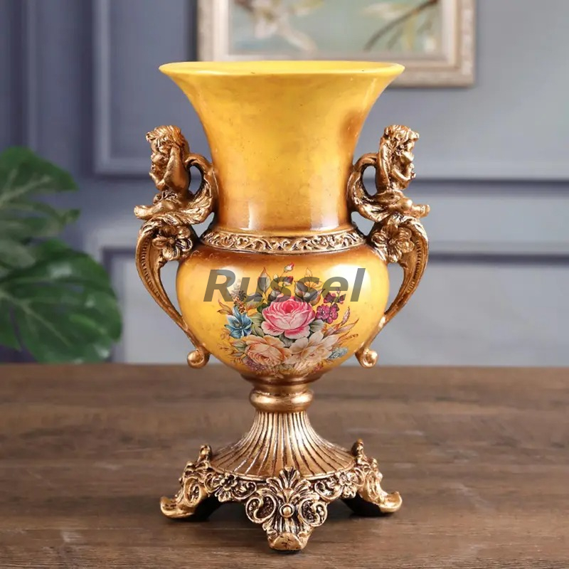 - 花瓶 アンティーク調 ヴィンテージ調 ヨーロッパ 花柄 取っ手付き 生け花 おしゃれ かわいい エレガント インテリア 装飾 結婚式 パーティ