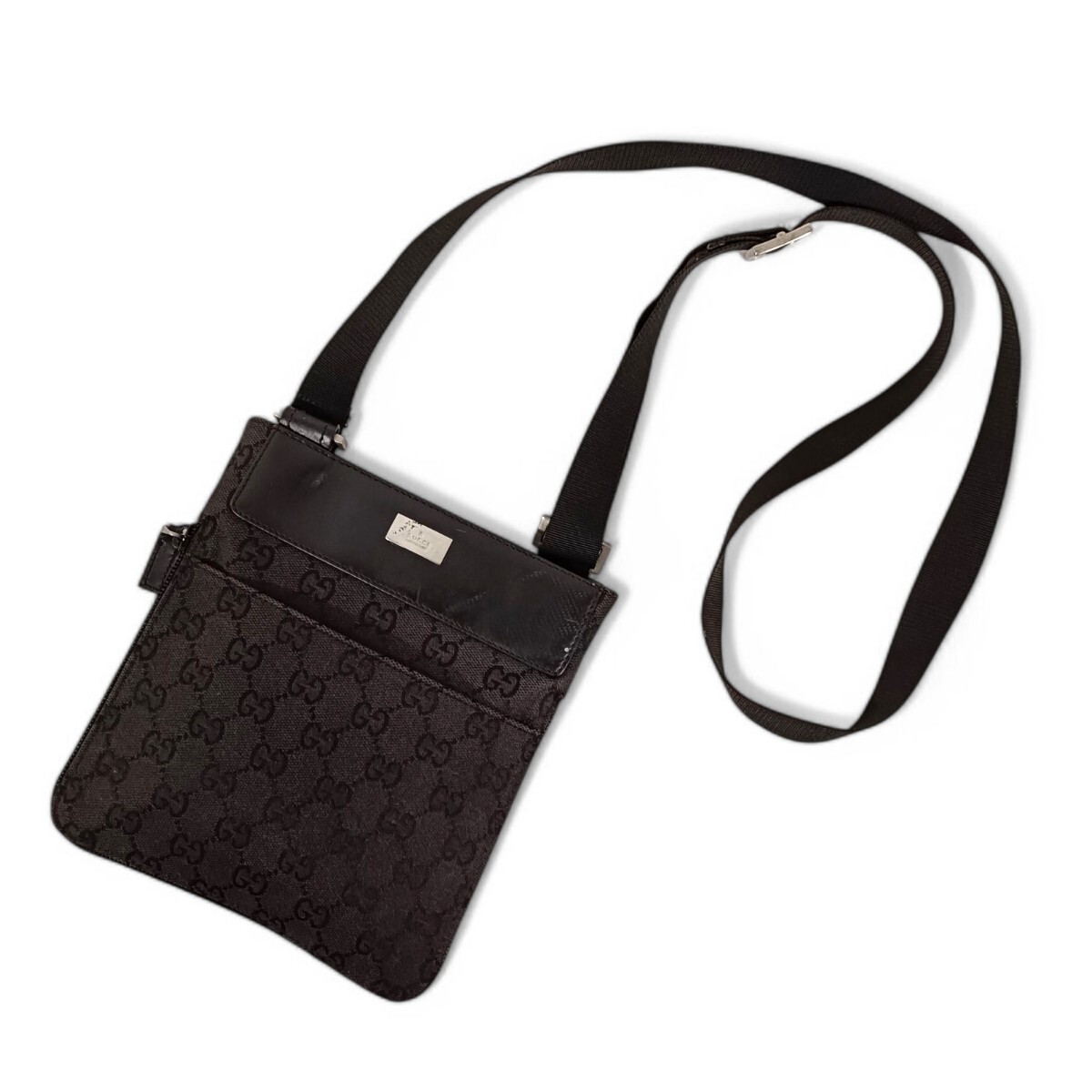 - 正規品 GUCCI グッチ GGキャンバス ショルダーバッグ サコッシュ 黒 鞄 ブラック ポシェット 斜め掛け 男女兼用 ユニセックス クロスボディ