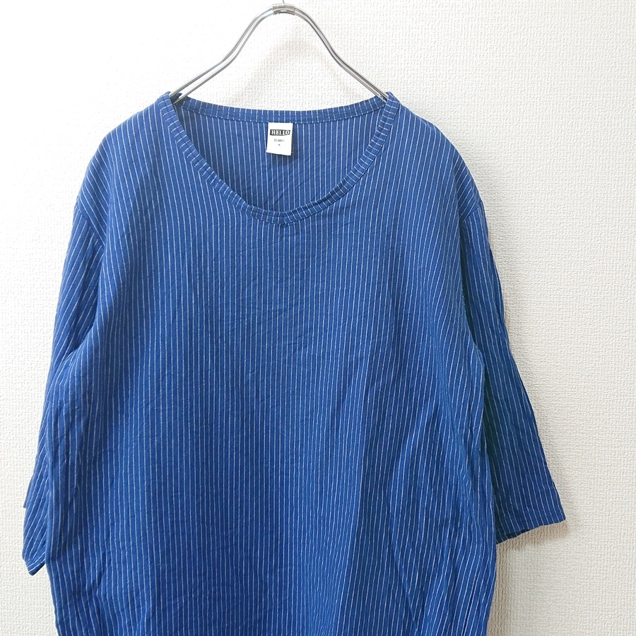 > HELLO BIANKS ブランクス ストライプ Vネック Tシャツ 七分丈 sizeM 美品