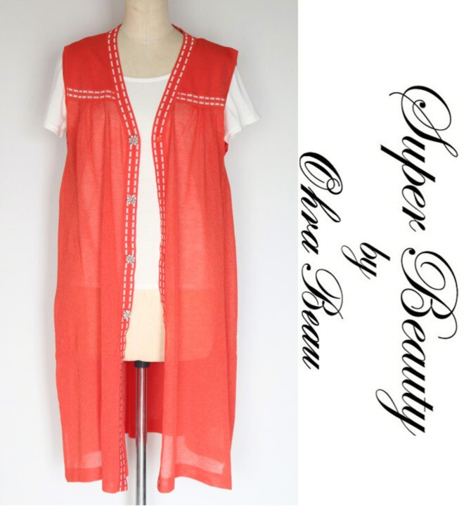 - 18,700円新品タグ付き【スーパービューティー】春夏羽織り ビジュー釦 ロングベスト ノースリーブカーディガン 44(XL) v6658