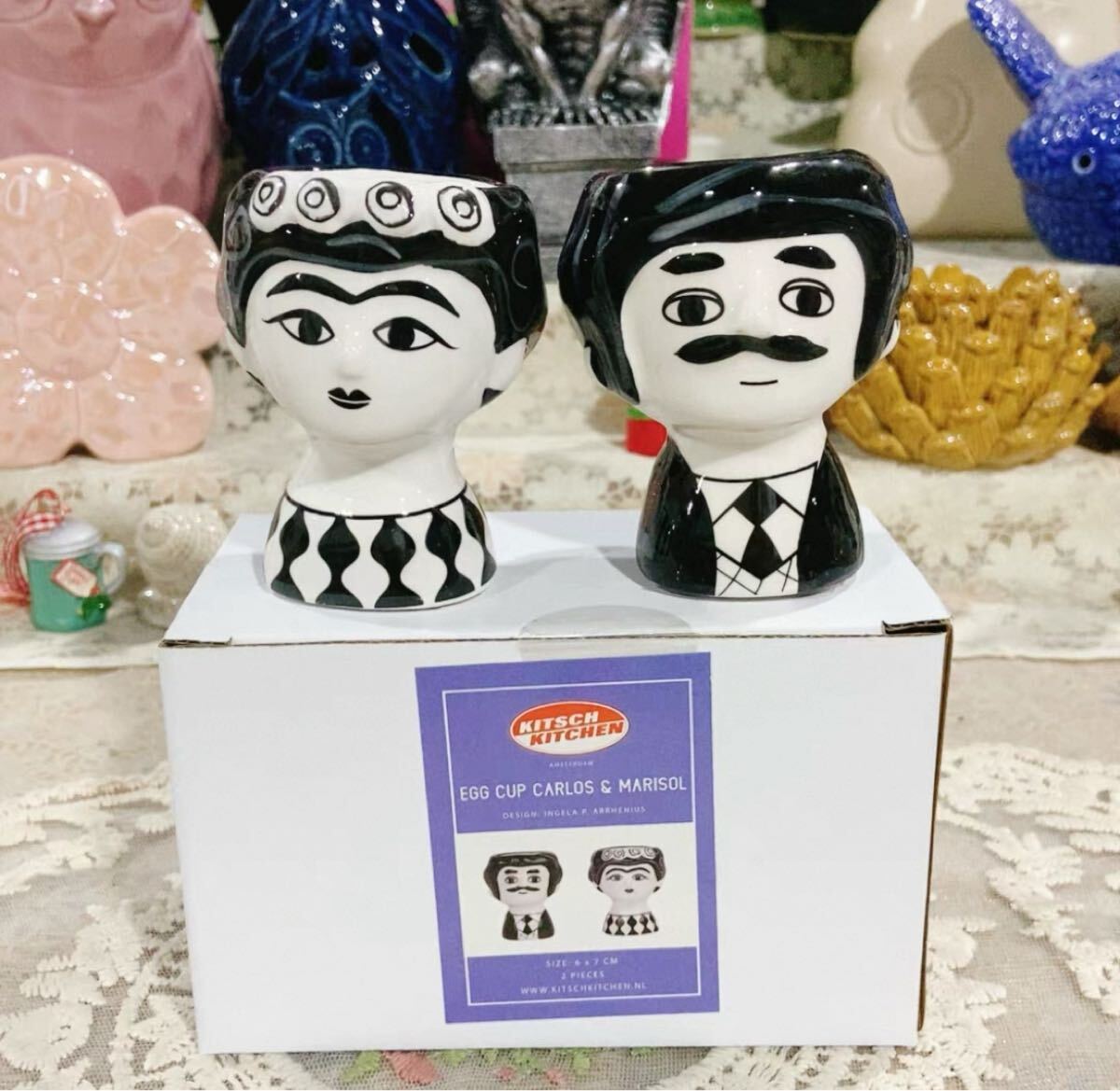 - 新品 ヨーロッパの装飾品、卵のディスプレイ 置物 陶器 Kitsch Kitchen eierdop set zw/w. 当時物 人形 昭和レトロEgg Cup