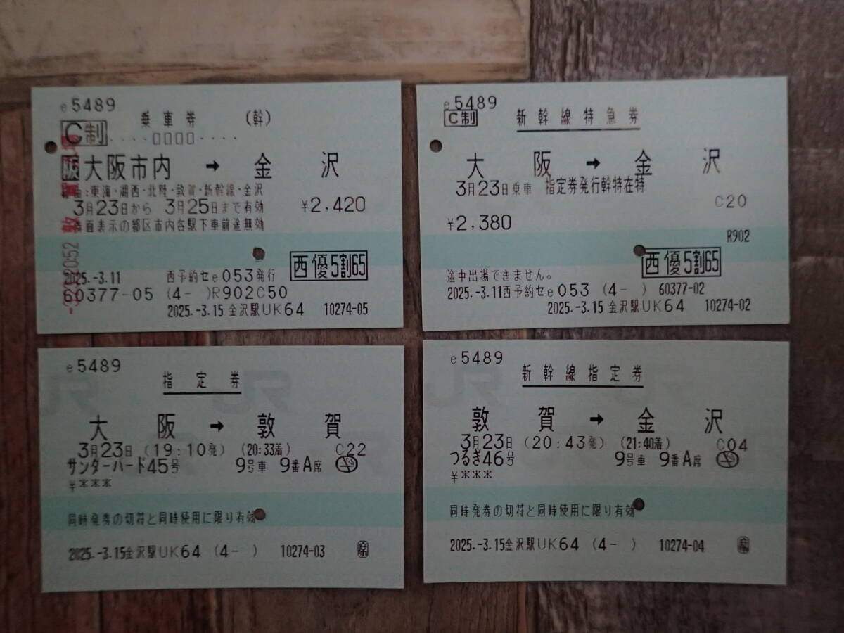 - ◇JR西 北陸新幹線つるぎ 特急サンダーバード 大阪⇒金沢 切符 マルス券 乗り鉄 旅鉄◇
