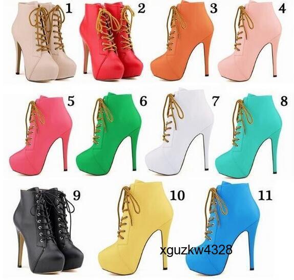 - レディースショートブーツ レースアップブーツ 美脚 ピンヒール 編み上げミドルブーツ ブーティ 袴ブーツ アンクルブーツ黒 多色22.5~26cm