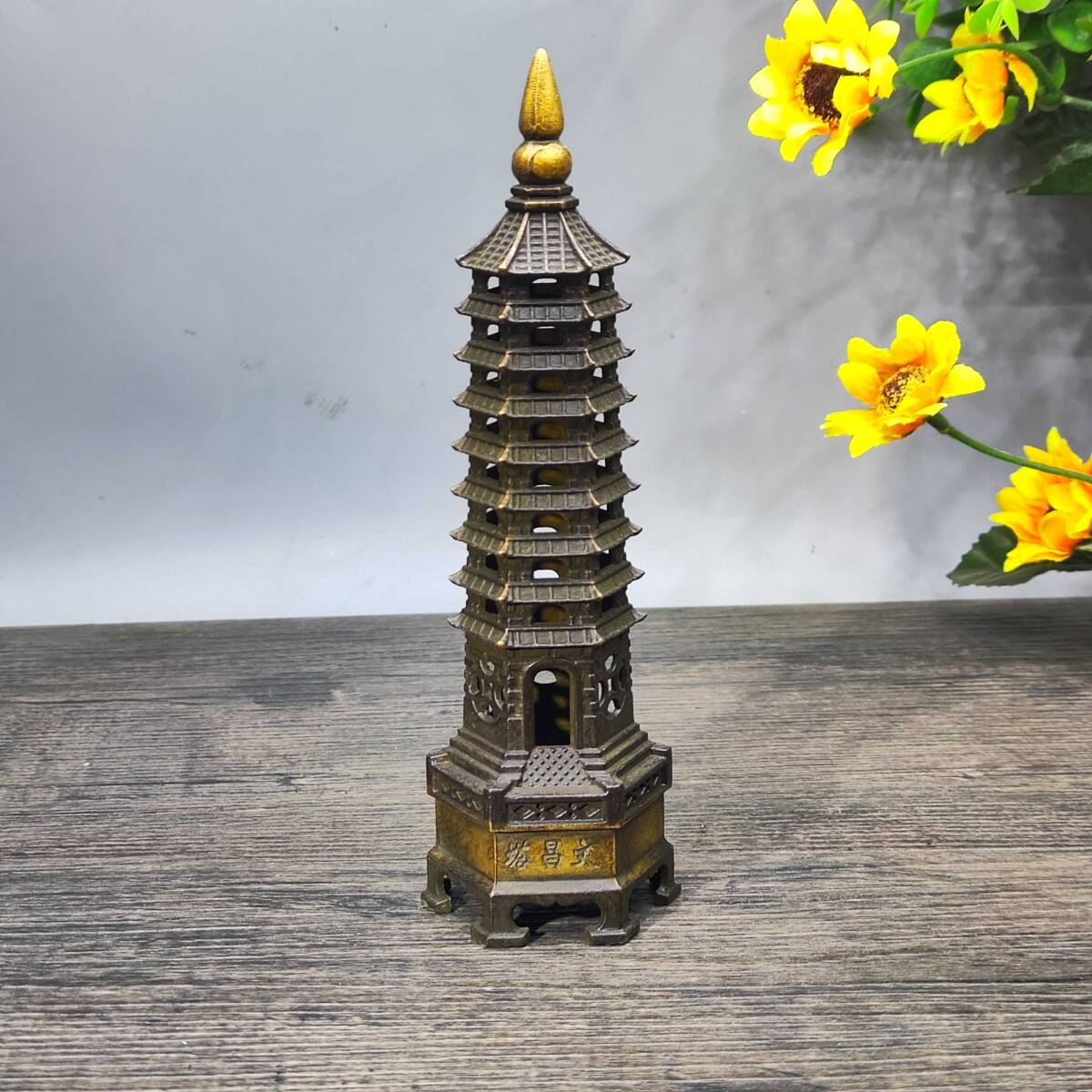 - 清 古銅彫 文昌塔 極細工 古賞物 古美味 東洋彫刻 時代物 骨董 中国古美術