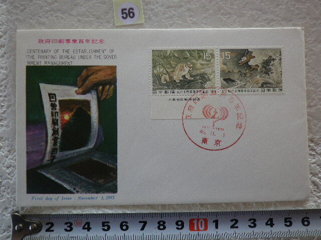 - FDC 政府印刷事業 1971年 2貼1消 銘板付 解説書有 郵政弘済会●56●