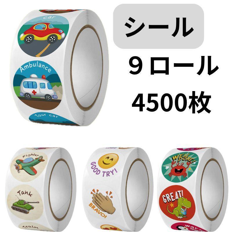 - シール 9種 4500枚 ラッピング ハンドメイド 手紙 サンキュー 乗り物 車 恐竜 動物 飛行機 子供 大量