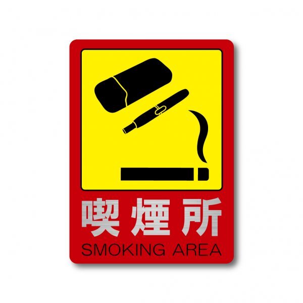 - 喫煙所ステッカー 110X150mm たばこ 電子タバコステッカー イエローレッド マットラミネート 新品 国内生産 防水 おしゃれ 表示 シンプル