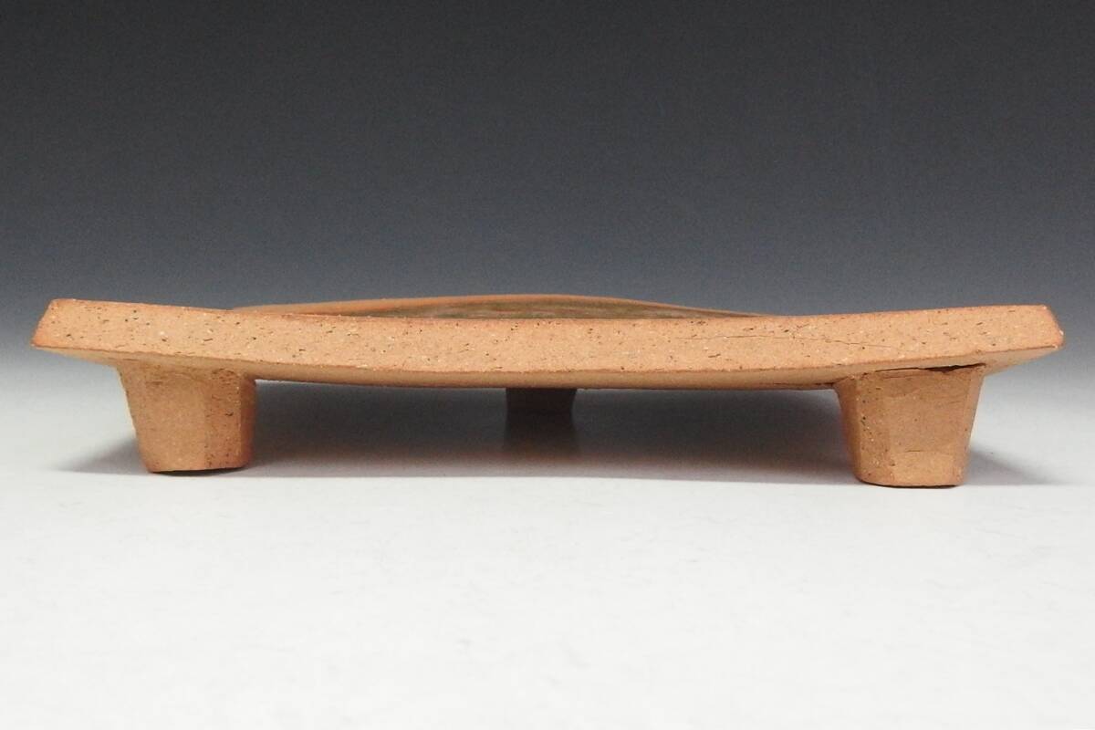 - 北大路魯山人 備前焼葉紋 三足長方皿 ロ印有り 本物返品OK 250401−12