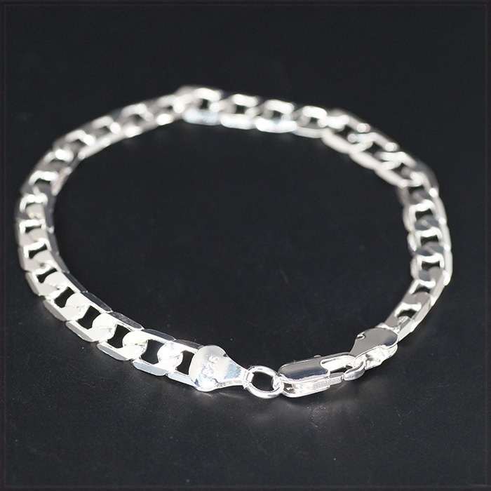 - [BRACELET] 925 Sterling Silver Plated 6面カット オーバル 喜平 チェーン シルバー ブレスレット 8x200mm (12g)