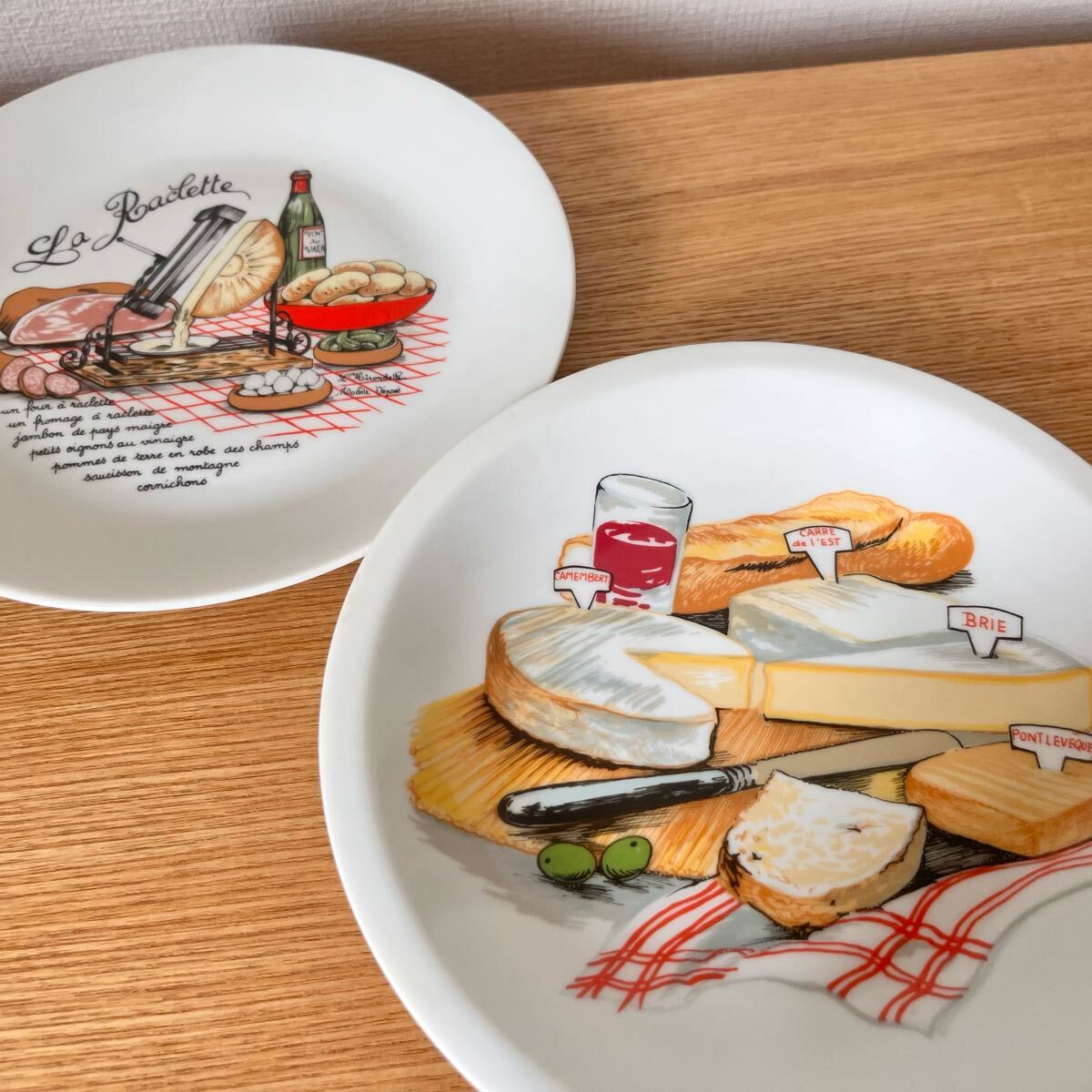 - ヴィンテージ フランス チーズプレート2枚セット 絵皿 皿 菓子皿 飾り皿 中皿