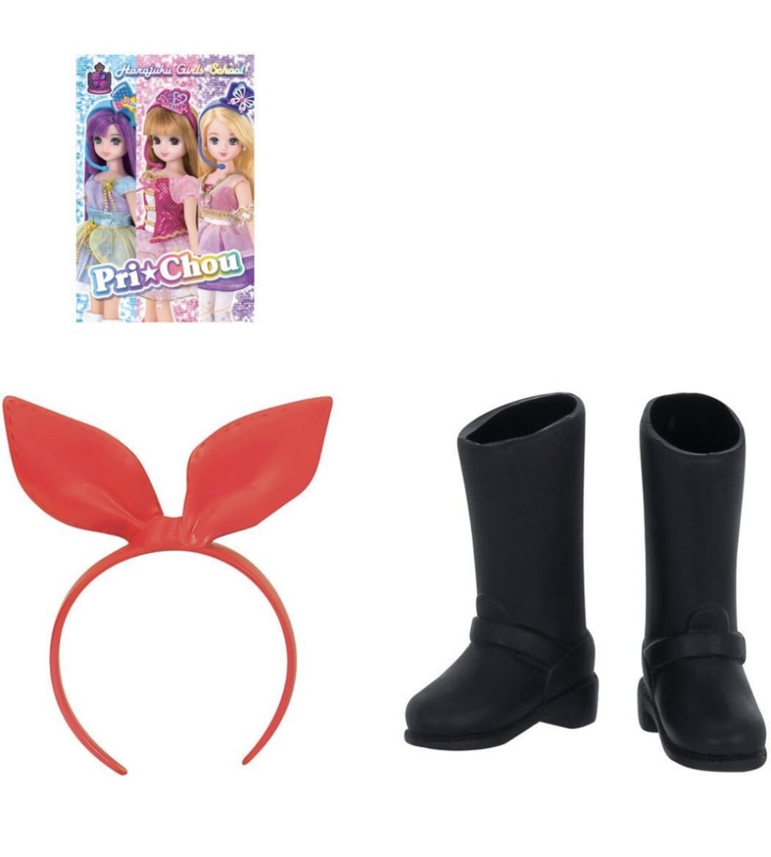 - リカちゃん 原宿ガールズスクール コーデグッズセット エンジニアブーツ うさ耳 ミニブック 小物 シューズ