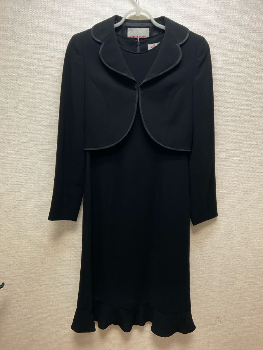 > アルファキュービック ALPHA CUBIC formal 5号 ジャケット+ワンピース アンサンブル ブラックフォーマル クリーニング済み 冠婚葬祭