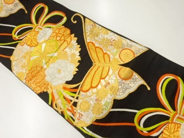 > ys7344426; 宗sou 花薬玉に蝶模様織出し袋帯(着用可)【アンティーク】【着】