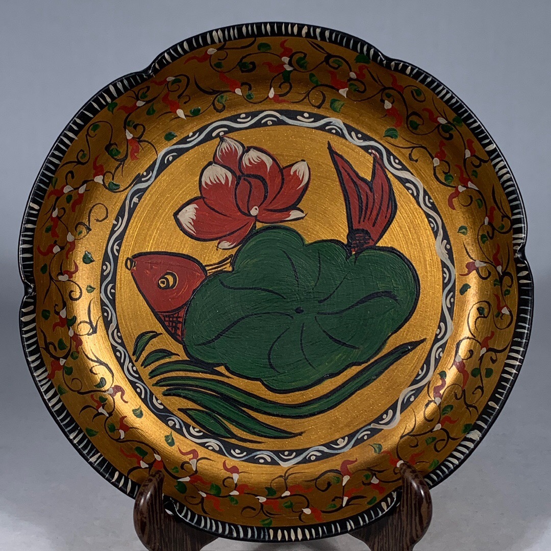 - 【仁】『宋・古陶瓷品・汝窯・彩繪・蓮魚紋・葵口盤』極細工 古賞物 中国古玩 古美術 古美味