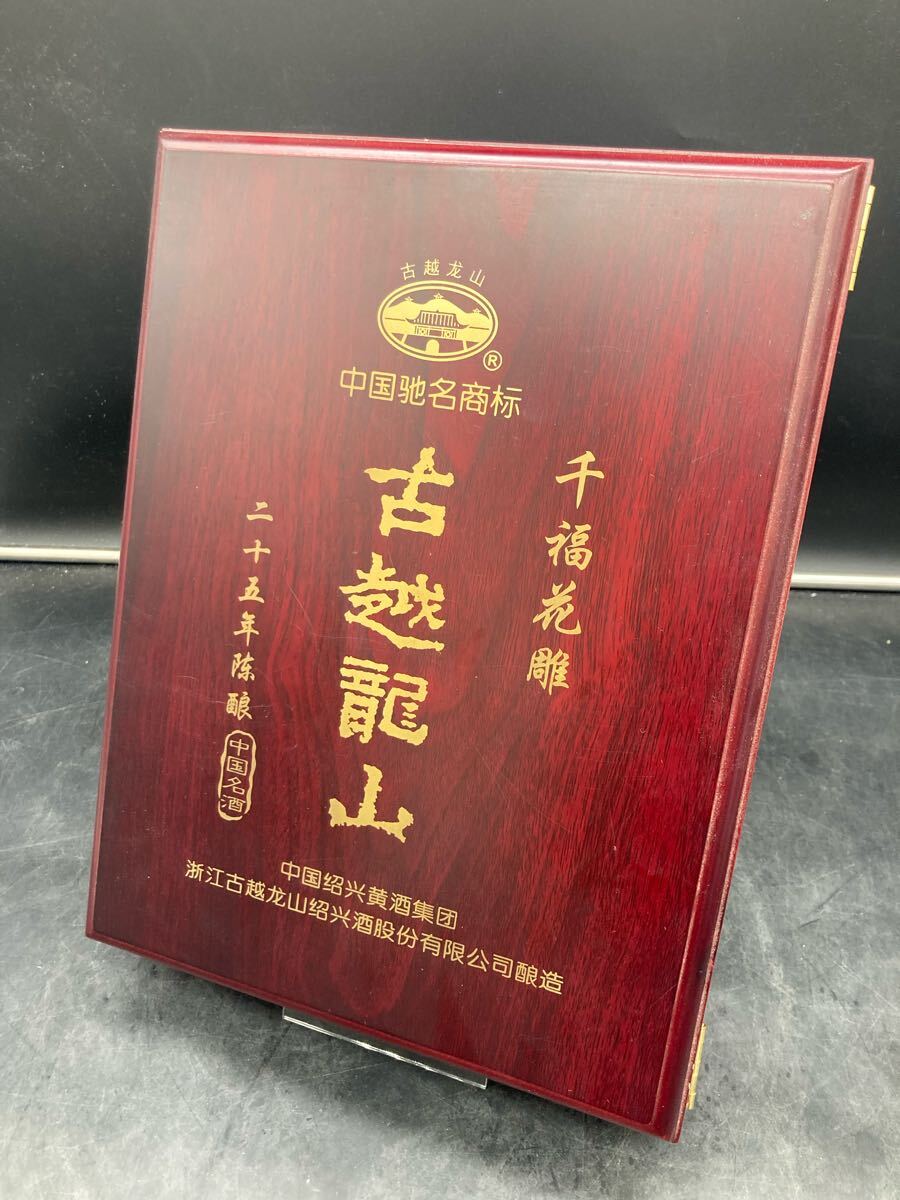 - 1415 千福花雕 紹興酒 古越龍山 ボトル25年 古酒 お猪口セット 中国
