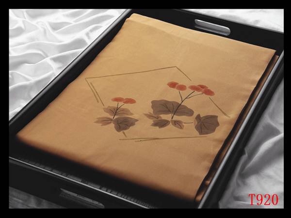 - 蔵【T920】西陣逸品 塩瀬 手描き 紅鬱金色地 気品豊かに 正絹高級美術名古屋帯 ◇検◇簪着物袋帯和装小物帯締め