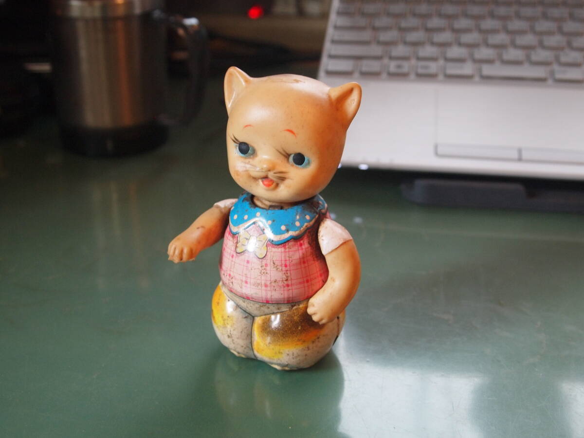 - レア★ブリキの猫『日本製・ゼンマイで動く面白品・中古並品』激安!