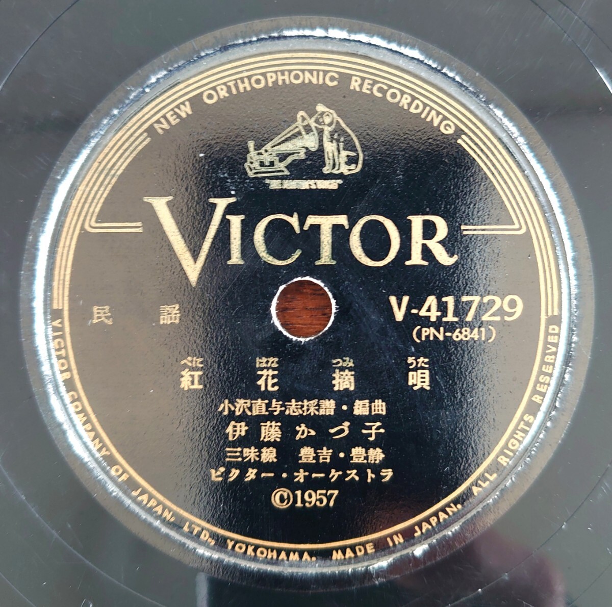 - 【SP盤レコード】VICTOR V-41729 民謠/紅花摘唄/チャグチャグ馬コ/伊藤かづ子 三味線 豐吉・豐藤