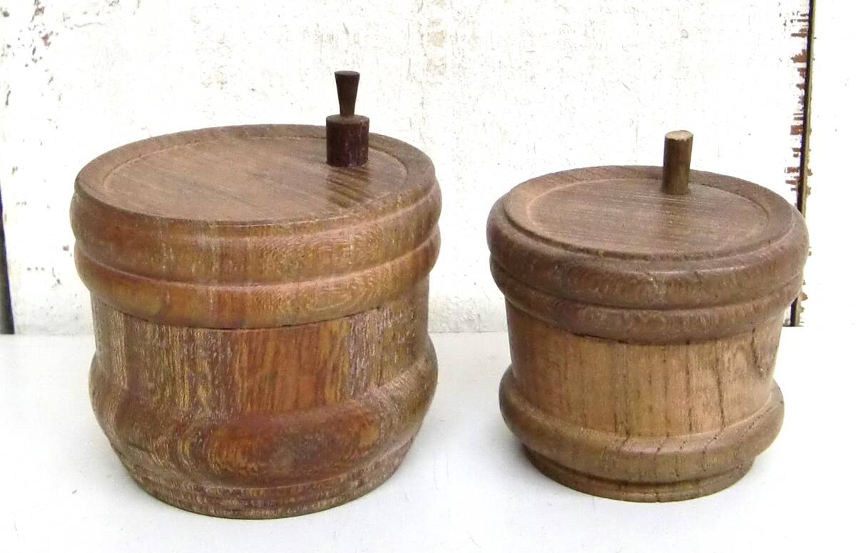 - *伝統工芸 工芸品 工芸美術 *樽型 木製 *七味入れ *大小 2点まとめ セット *古物 骨董 古美術 *アンティーク レトロ