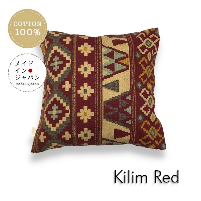 - クッションカバー キリム レッド 赤 45×45cm 綿100%