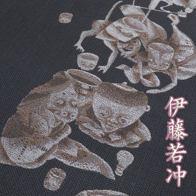 > 特選 袋帯 中古 リサイクル 正絹 カジュアル 仕立て上がり 全通 伊藤若冲 付喪神図 黒色 多色 きもの北條 A1169-13