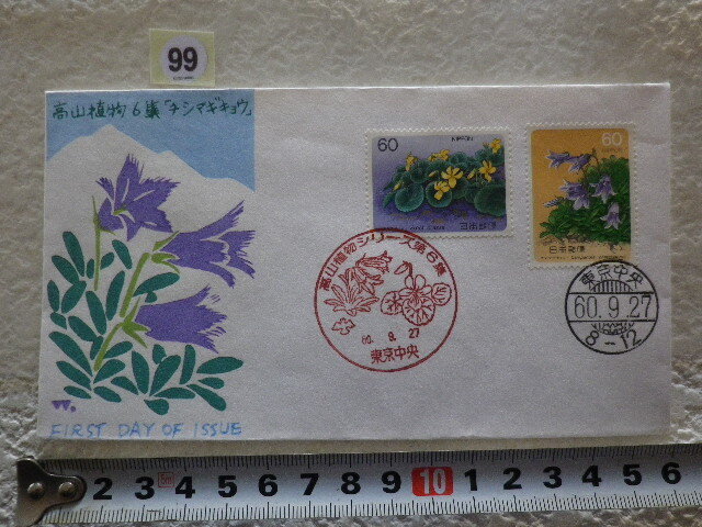 - FDC 高山植物 第6集 1985年 2貼2消 解説書有 松屋●99●