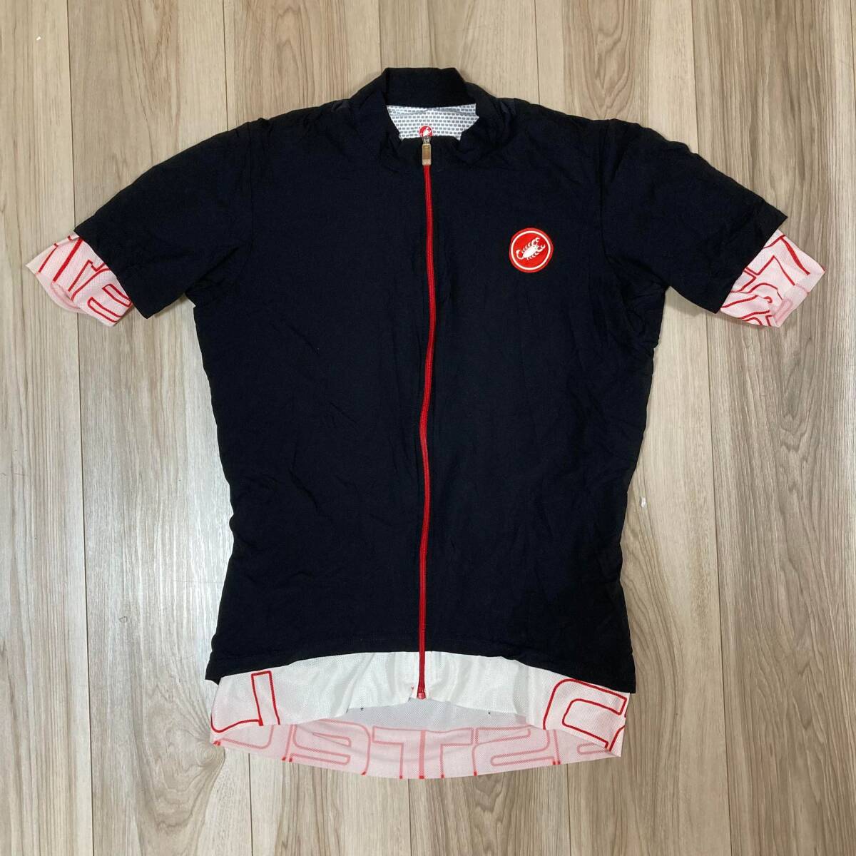 - 送料230★正規 カステリ 海外 S メンズ 半袖サイクルジャージ 二重風デザイン CASTELLI ハンガリー製 3ポケット 速乾 良質品 n428 ブラック